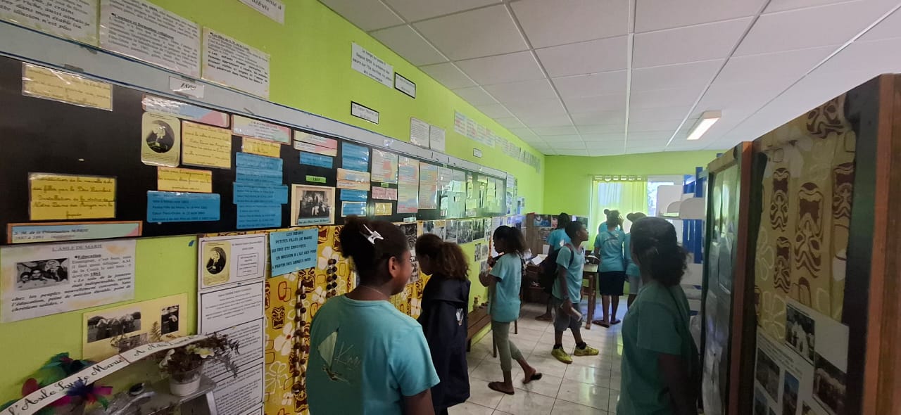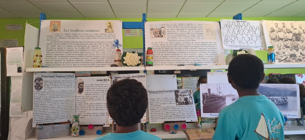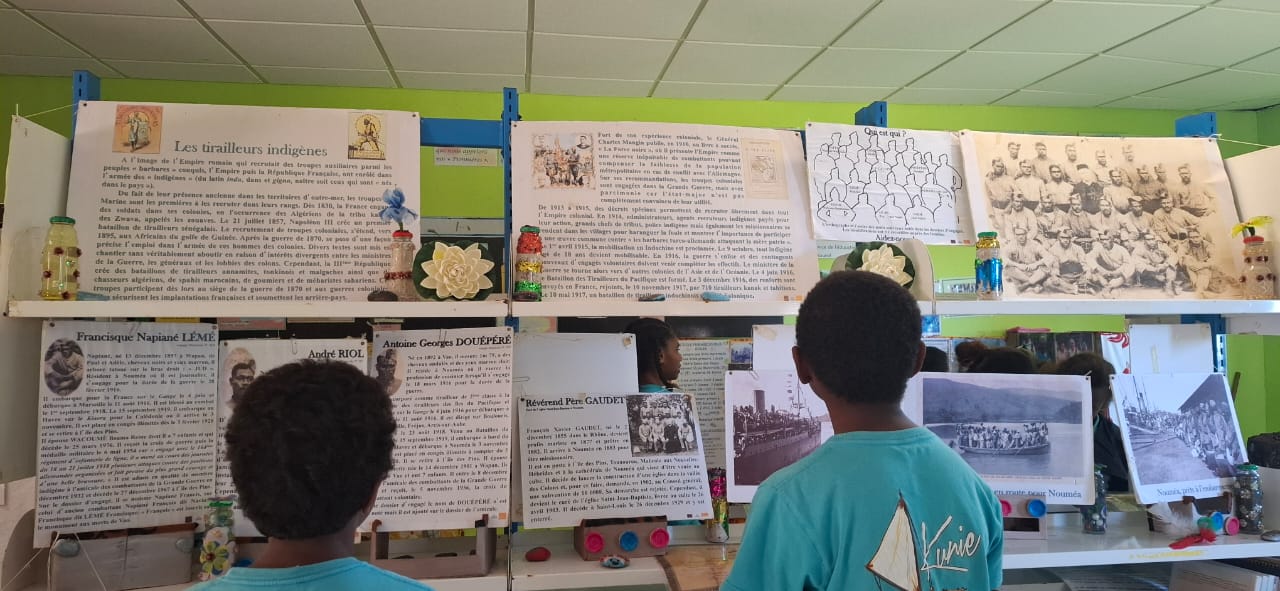 Un moment particulièrement émouvant fut consacré à l’histoire des tirailleurs kanak de l’Île des Pins, envoyés en métropole pour combattre durant les deux guerres mondiales. Les exposantes ont souligné le courage, la loyauté et les sacrifices de ces hommes souvent oubliés dans les grands récits historiques. Grâce à des documents d’archives, des photos anciennes et des objets personnels, les élèves ont pu toucher du doigt cette page douloureuse mais essentielle de notre passé.