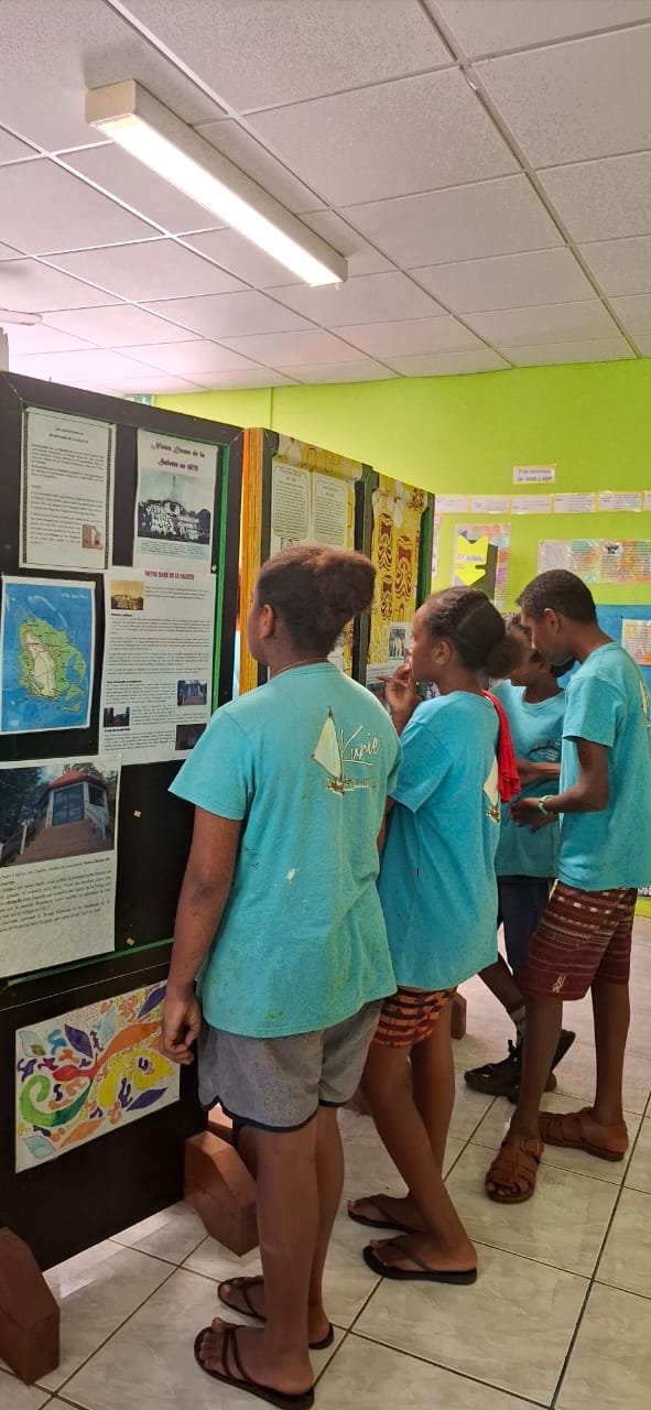 L’exposition a également mis en lumière l’histoire de l’église Notre-Dame de l’Assomption, un édifice majestueux construit au XIXe siècle par les missionnaires maristes et les habitants de l’île. Les élèves ont appris que cette église, construite en pierre de corail, symbolise à la fois la foi chrétienne et le savoir-faire local. Ce patrimoine spirituel est lieu de rassemblement et de prière pour la communauté.