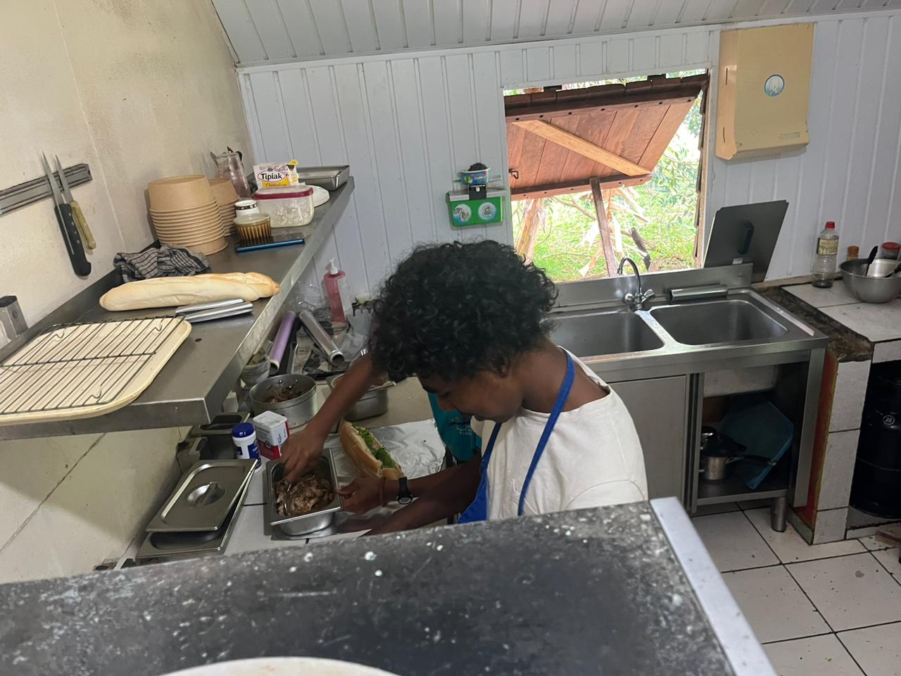 Au snack Kohu aupres de Jean-Marc et Kilisitina VANNHO , Isidore et Nazaire ont découvert les coulisses de la restauration. Préparation, service, accueil des clients… une expérience dynamique et formatrice !