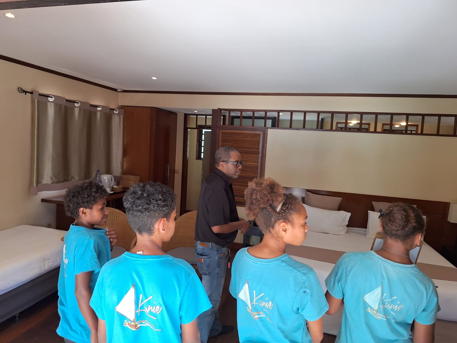 Répartis en petits groupes, les élèves ont suivi un parcours thématique leur permettant d’explorer différents espaces : accueil, restaurant, cuisine, chambres et espaces extérieurs.