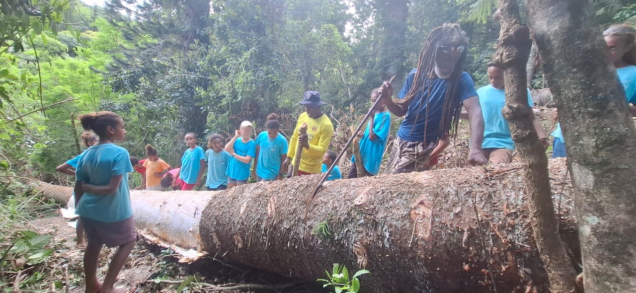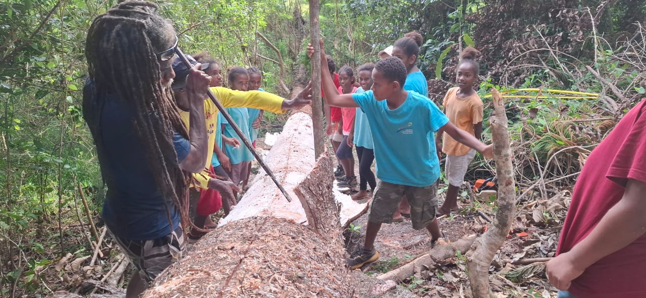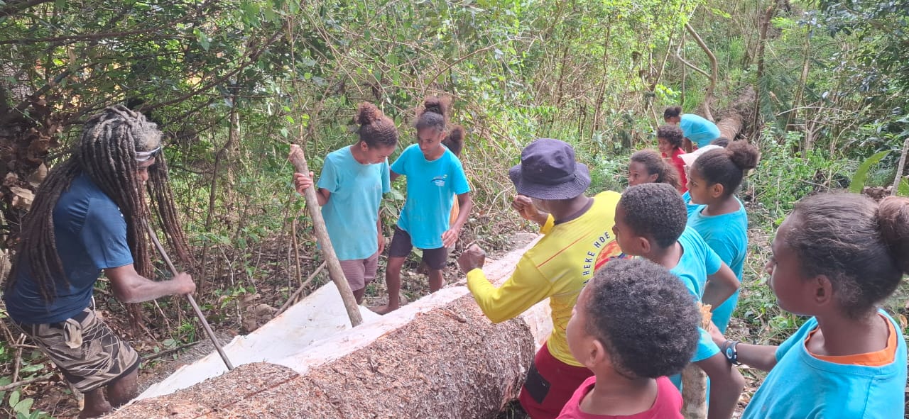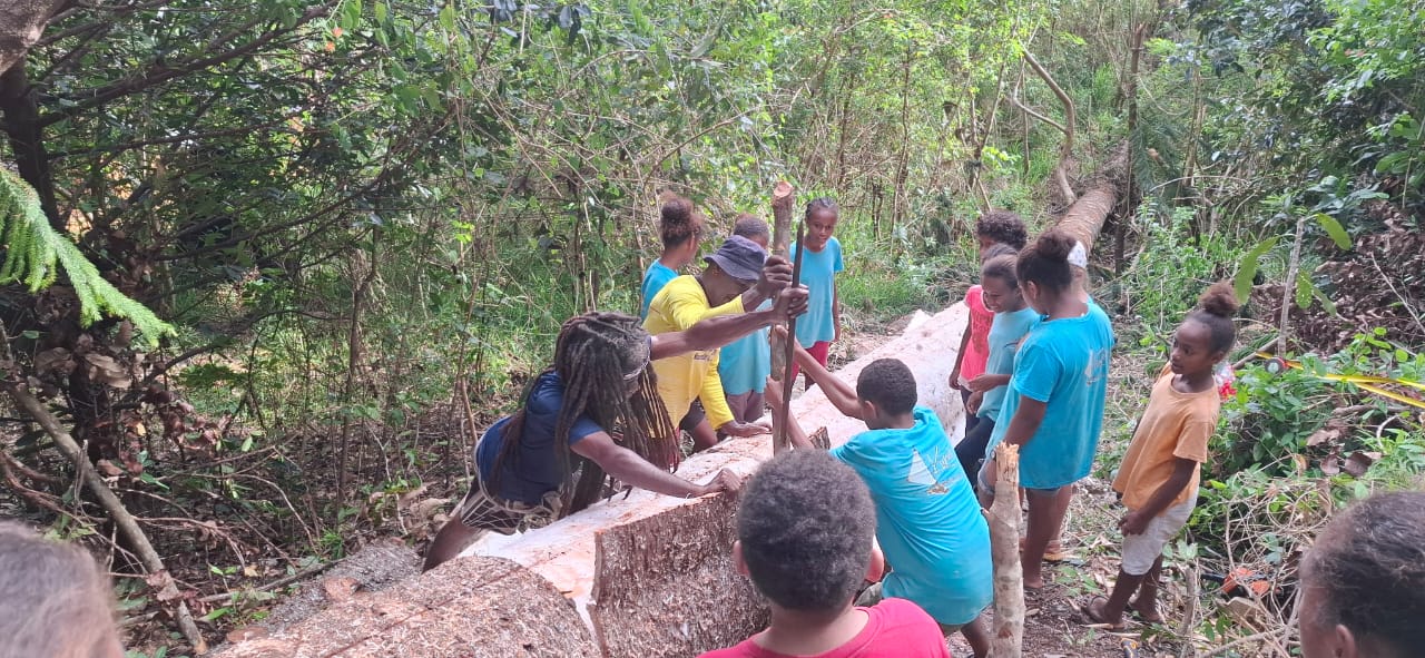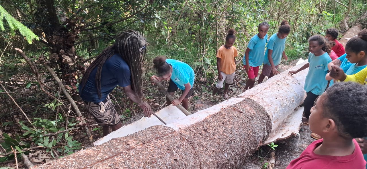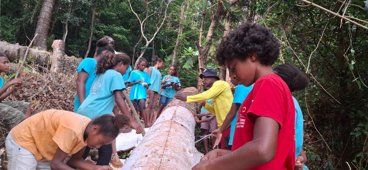 Ce moment de travail manuel a été particulièrement enrichissant, permettant aux élèves de se confronter directement à la matière première de leur future pirogue.