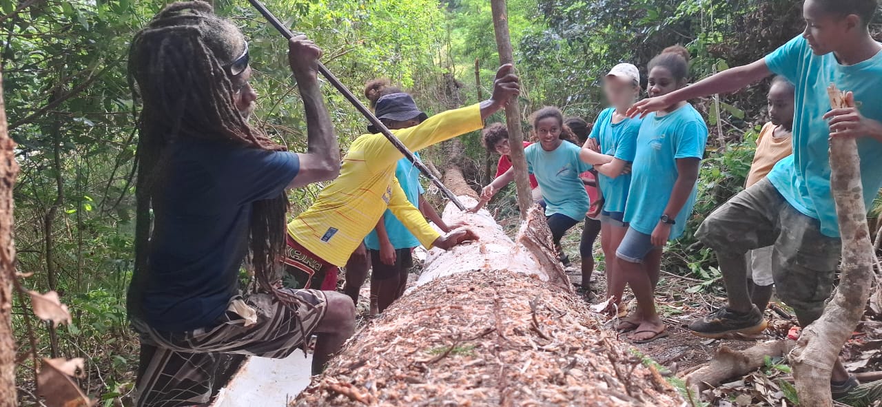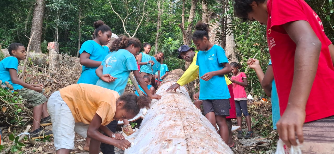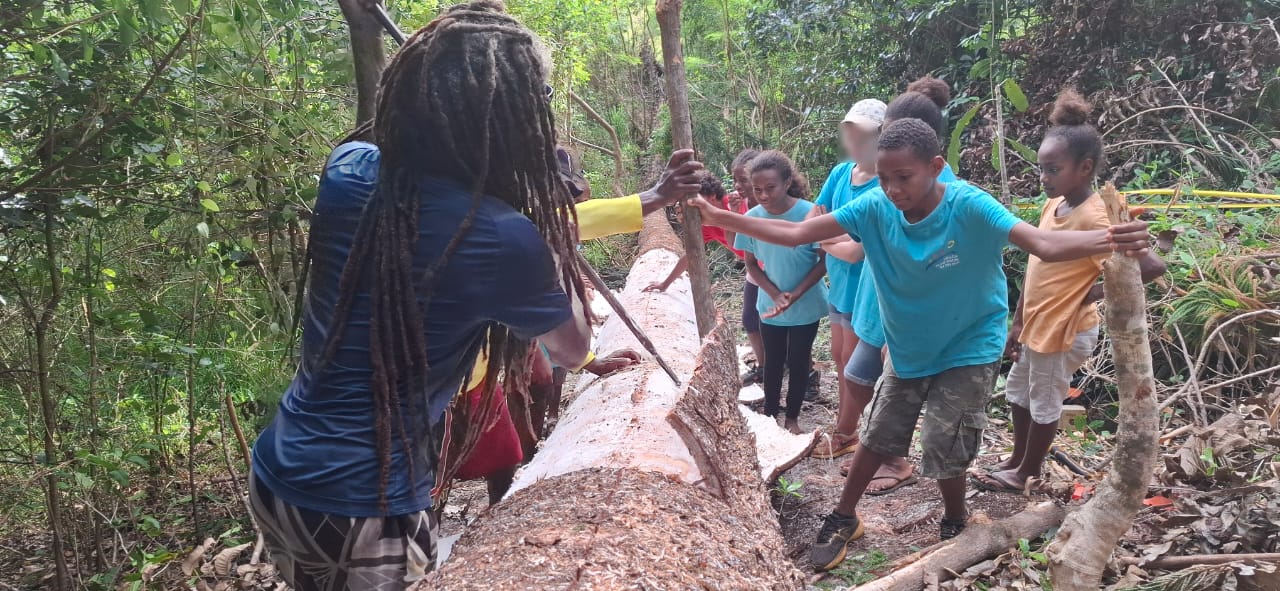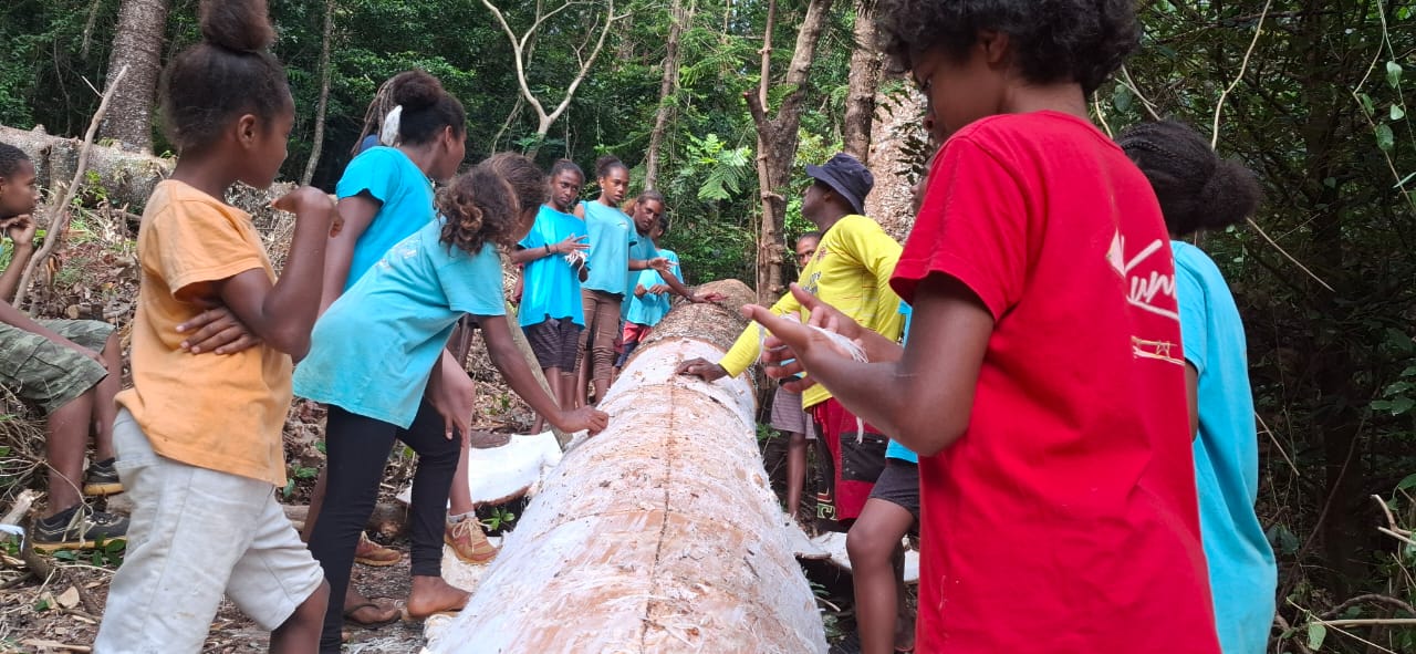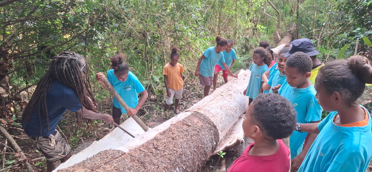 Ce moment de travail manuel a été particulièrement enrichissant, permettant aux élèves de se confronter directement à la matière première de leur future pirogue.