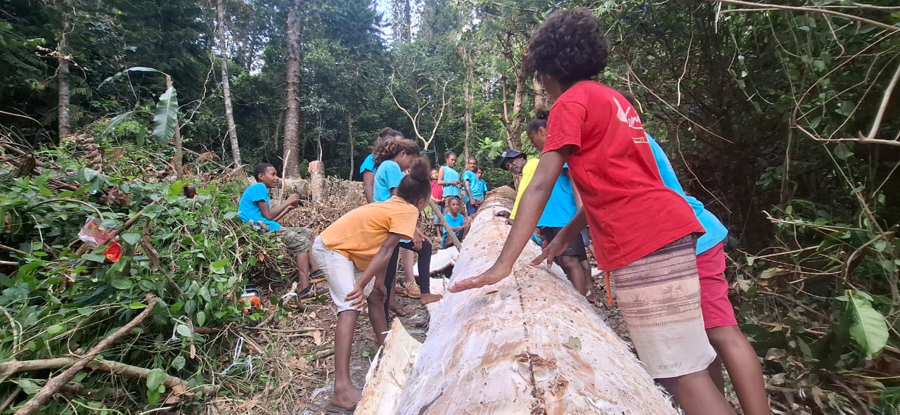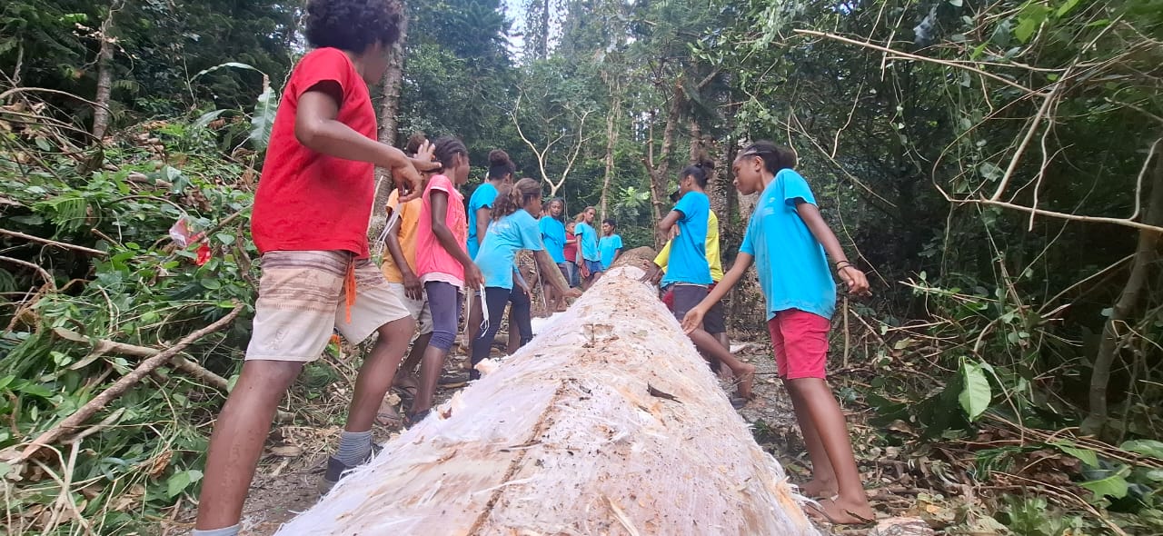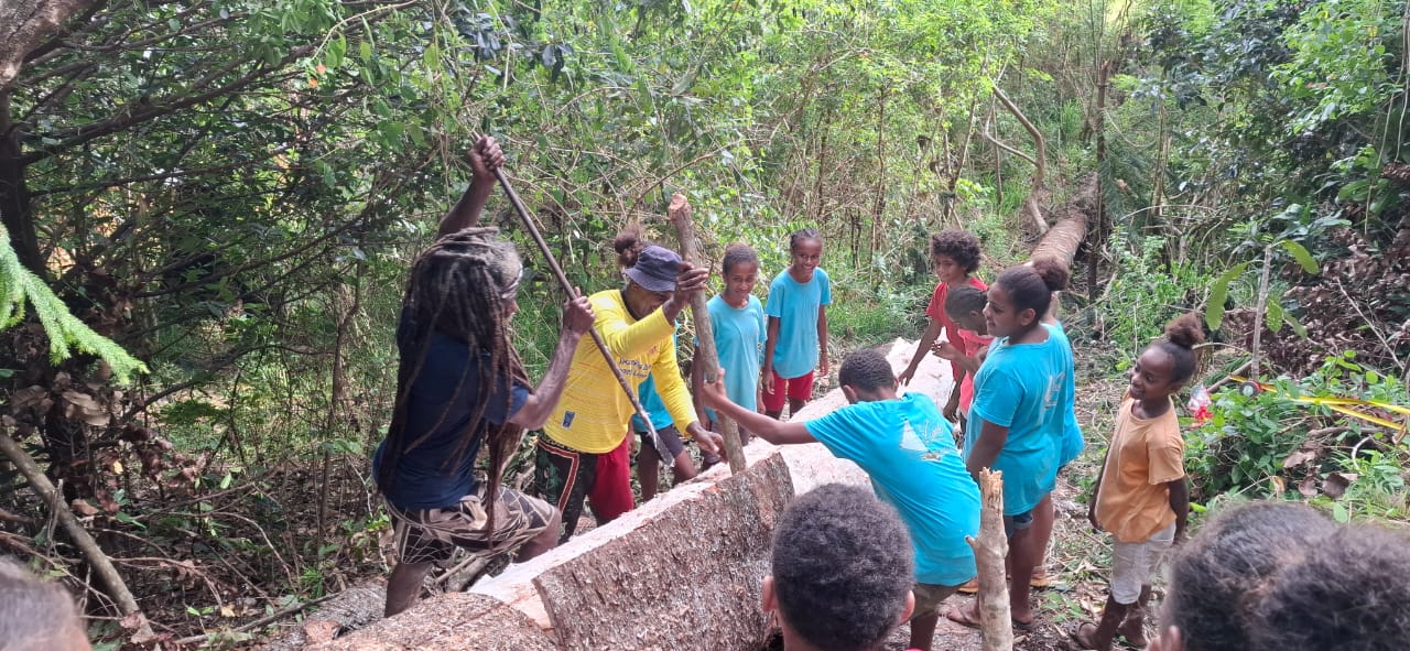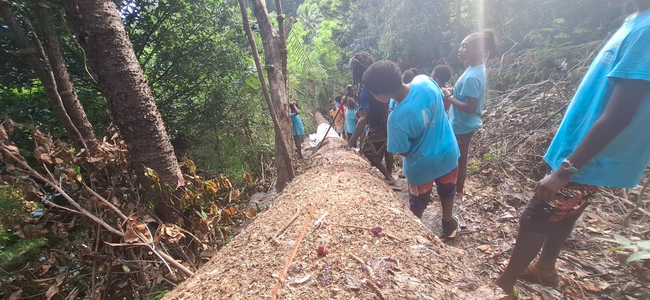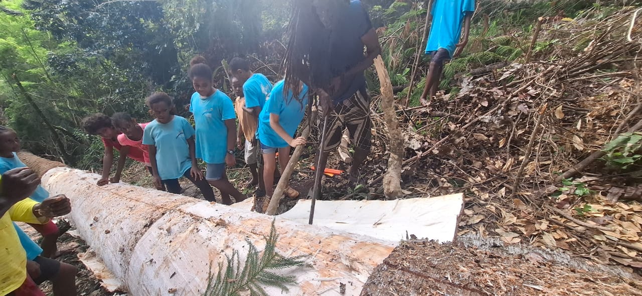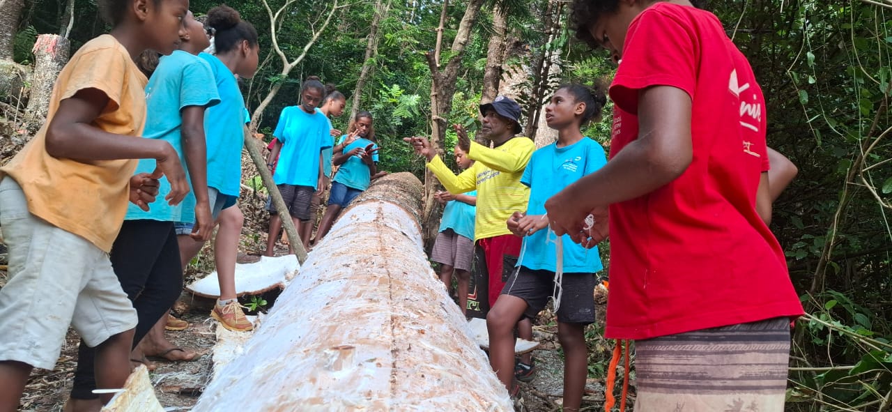 Ce moment de travail manuel a été particulièrement enrichissant, permettant aux élèves de se confronter directement à la matière première de leur future pirogue.