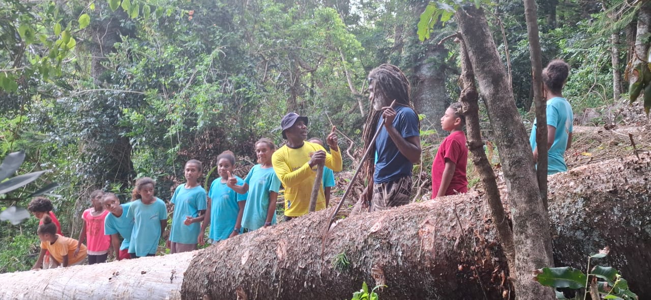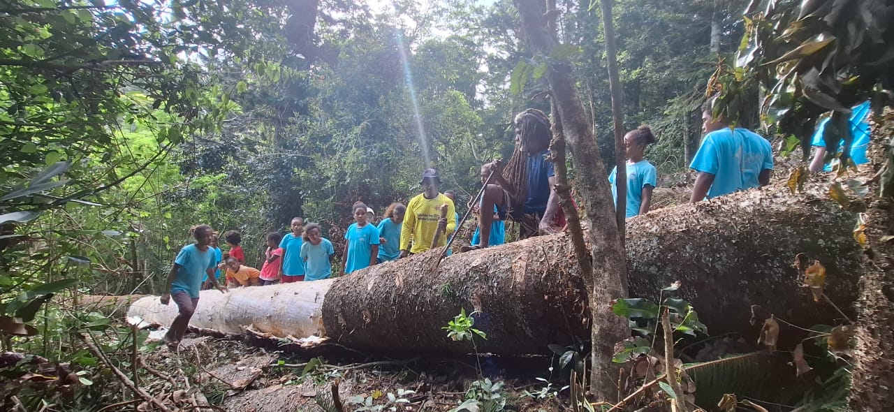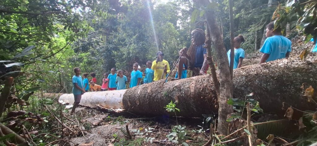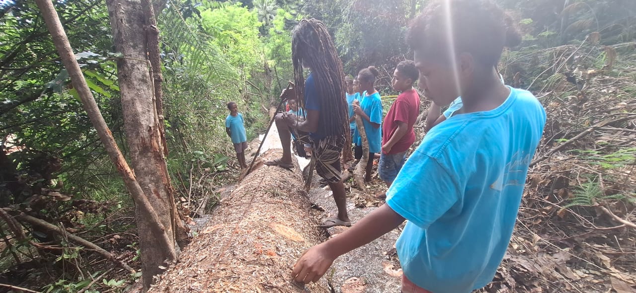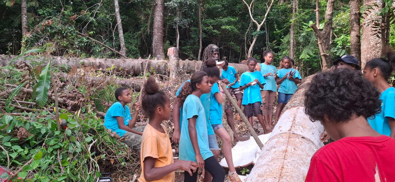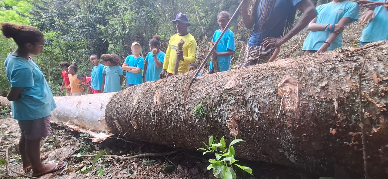 Une étape cruciale du projet a été la sélection et l’abattage de l’arbre qui servira de coque. Les élèves ont eu l’opportunité de rencontrer et d’échanger avec M. Octave Douepere et M. Jean Douepere, détenteurs de ce savoir-faire.