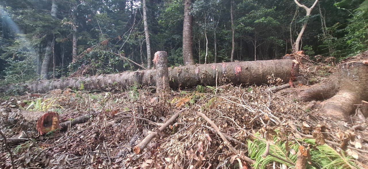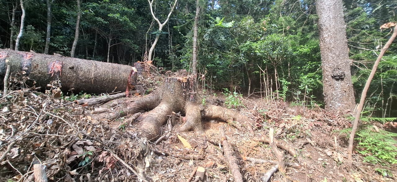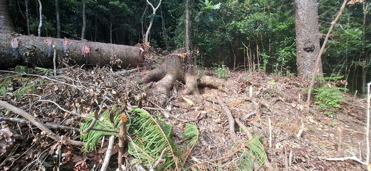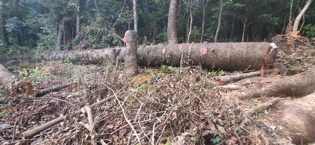 L’arbre choisi est un pin colonnaire (ou Araucaria columnaris), dont la coupe a été effectuée selon les méthodes traditionnelles, notamment durant la phase de la pleine lune, un repère important pour garantir la qualité du bois.